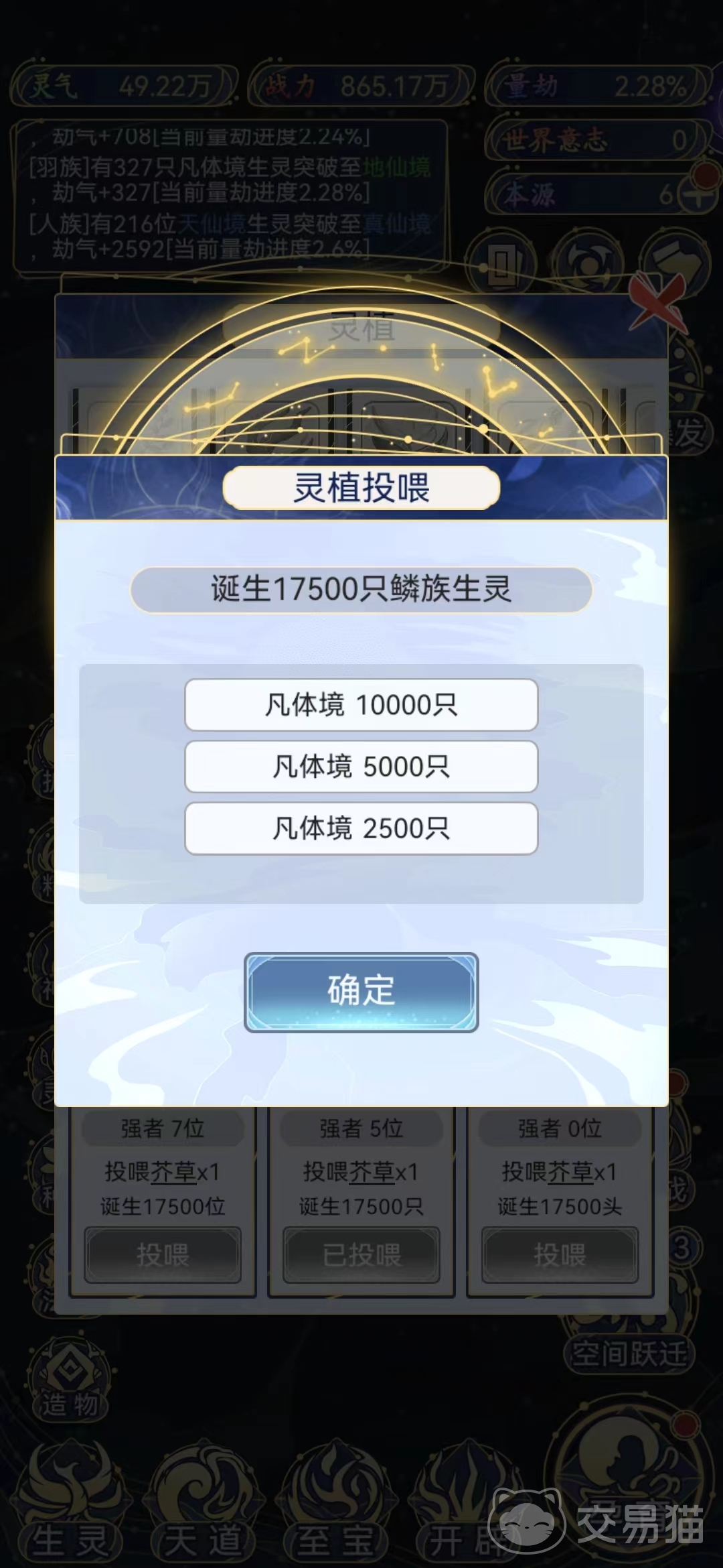 以上就是天道创造灵植怎么投喂的相关介绍啦,现在大家知道在游戏中怎么投喂灵植了吧,在投喂之后相对应的种族就会诞生更多的生灵哦,大家快去自己试试投喂吧。