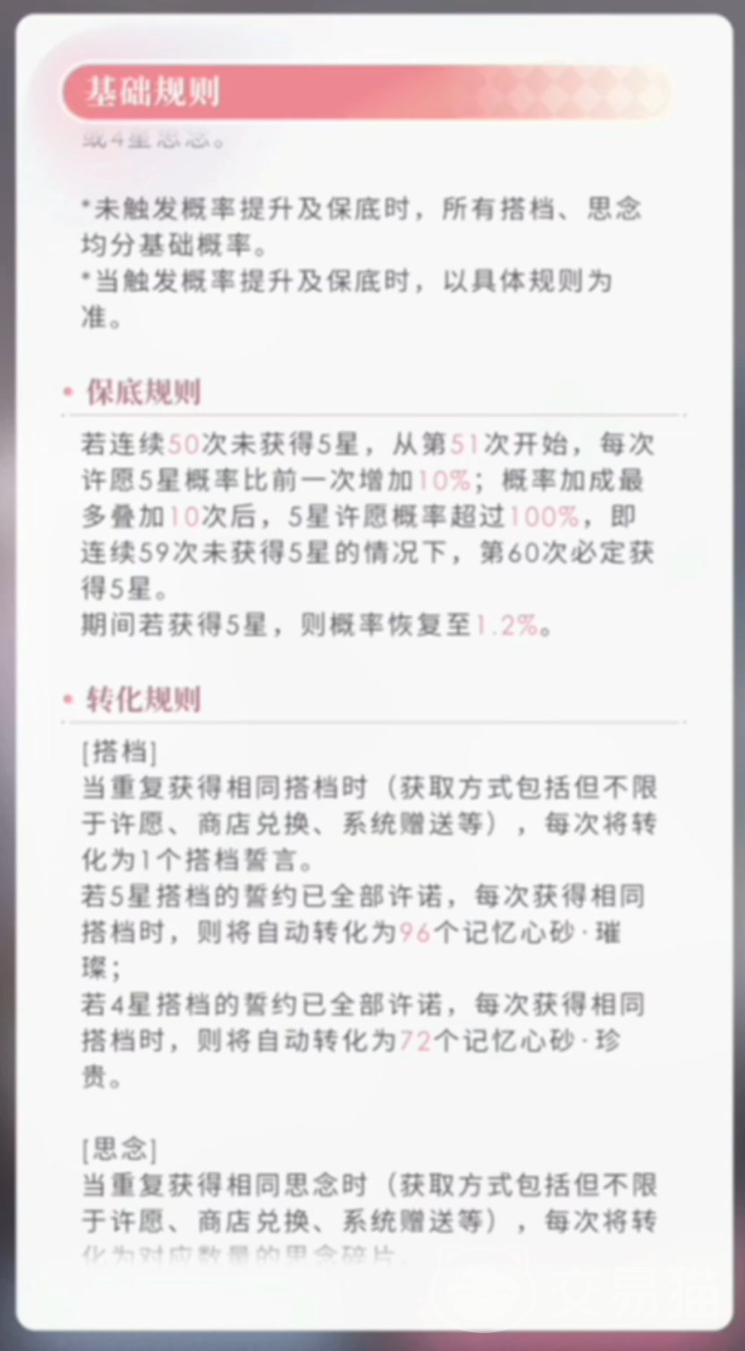 恋与深空抽卡玩法就介绍到这了,恋与深空的抽卡系统是游戏的一个重要的环节,玩家可以通过抽卡来获得不同的搭档和装备,提升自己的战斗力和剧情体验。但是抽卡玩法上也有着幸运值和保底优惠,所以大家还是可以试一试的。最好利用这些机制来提高抽卡的效率和概率,获得心仪的搭档和装备。