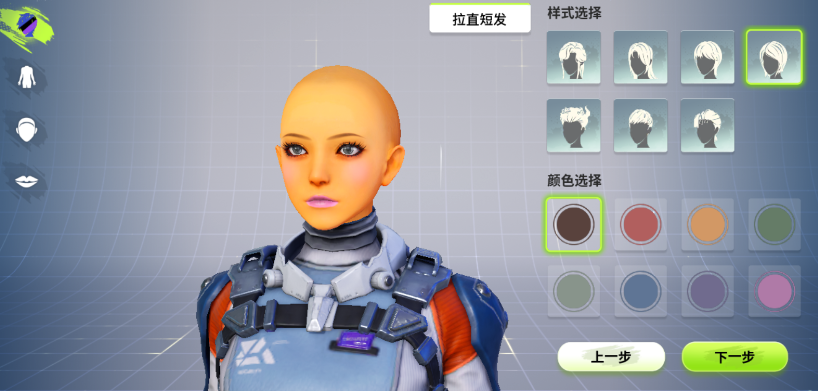 目前游戏中一共是有四个不同的部位可以选择修改,一些详细一点的,比如鼻子的形状或者眼睛的形状则需要大家在面部选项中进行修改!进入游戏后,玩家们可以在【头部】选项中,从七种不同的发型样式中,选择自己喜欢的,然后还可以调整发型的颜色!