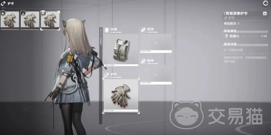 装备这一块则是分成了四大块,分别是防具、护手、以及两个配饰,获取途径是通过基建的装配站制造,而且非常良心的一点是装备都是固定属性,不需要强化。凑齐两件、三件同一套装的装备后还能得到额外的特殊效果。例如“铁手护卫套”的2件套防御提升40%,3件套防御提升55%受伤降低12%。