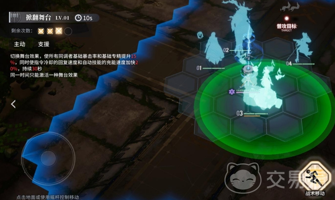 使用芙蕖的时候在主动技能效果上面其实是有一个支援效果的,使用的时候可以直接切换舞台效果,使所有同队的成员在基础暴击率以及基础专精上面有提升,虽然提升的数值只有15%但是两者一起提升的效果还是相当不错的,除了这个效果之外同时还可以使这个技能稍后冷却的回复速度加快一些,并且出了主动技能加快自动技能的充能速度也会加快20%。