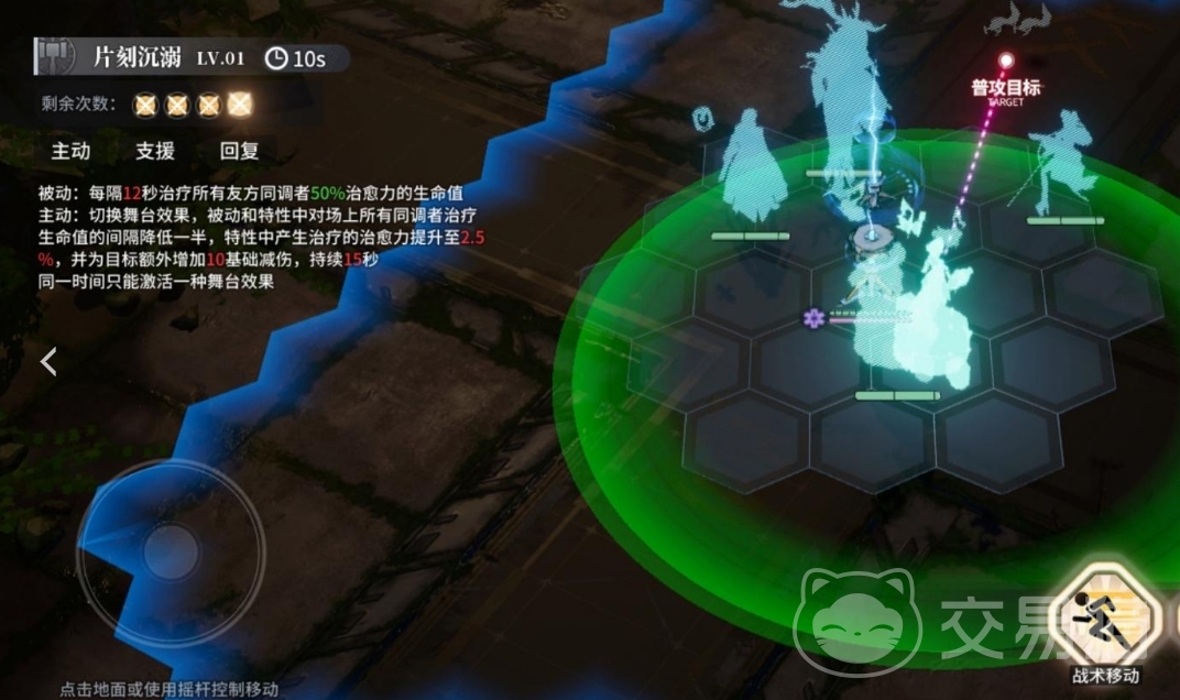 被动和特性中对场上所有队友治疗生命值的间隔将会降低一半,特性中产生治疗的治愈数值将会提升至2.5%,而且在治疗的时候会为目标额外增加10数值的基础减伤,持续15秒的时间有效,但是同样在同一时间之内是只能激活一种舞台效果的。