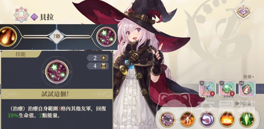 在3阶的时候就可以让己方目标范围之内所有的友军都得到攻击提升的效果,虽然只有2点提升,但是后续还有免疫效果可以给队友带来保护,这个效果同样也是持续两个回合,其次就是5阶技能,在上面是可以带来免疫效果的,如果是贝拉自己处于燃烧状态的格子之内,虽然会受到伤害,但是这个伤害的数值会下降10%,而且在这个行动的回合结束之后还会带来恢复的效果,恢复的血量直接有20%的生命中,相当于根本没有受到伤害了。