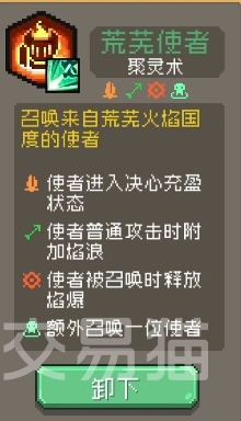 然后强化了“聚灵术”的“荒芜使者”也是个人比较推荐的一个祝福,它的效果是召唤两个火焰使者,这个使者本身的伤害不错,而且还能够充盈决心来提升自己的战力,后续经过提升该祝福所召唤的使者还会获得普攻附带焰浪的强化,提升满后该祝福更是可以额外召唤一位使者,并且召唤瞬间还能施放一次焰爆!