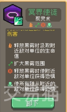 最后推荐的这个祝福是“冥界使徒”,它也强化的是聚灵术,其效果是召唤一片黑雾持续伤害范围内敌人,经过提升可以解锁额外的吸血,扩大范围以及恐惧效果,可谓是兼具AOE伤害,续航以及控制!