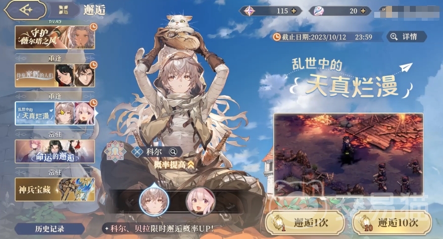 如果大家在铃兰之剑开服的时候去参与,那么在上面就可以查看到UP池中的冲锋卡池,这个是开服第一次会出现的卡池,在这个卡池中大家抽取到科尔以及贝拉的几率是最高的,除了这两个角色之外,还有塞曼莎以及列奥尼德也是重逢卡池当中的up角色。