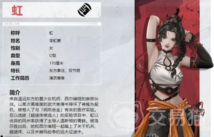 第三个为大家推荐的是虹,虹这个角色也是被大家称作为格斗家的角色,她虽然不擅长长距离作战,但是她的动作也是非常高效的,能够带来超强的爆发,目前在游戏中她的命中率可以说是非常高的,如果大家现在游戏中进行灵活作战,其实用它进行阵容搭配其实非常好,在闪避效果上面也是非常的牛,而且在游戏中有一定的致命一击伤害可以发出来,如果大家想要组建一个突击阵容的话,其实虹就非常适合。