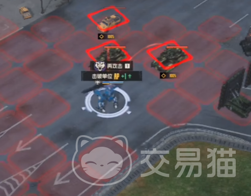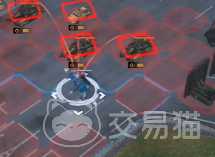 玩家首先先操作右边的机甲行动,将其调到前方后先打爆最右边的敌人,之后获取到再行动的能力,然后再打爆最左边的敌人,获取再次行动的能力,这个时候中间两个敌人随意打爆一个,结束这位机甲的回合。