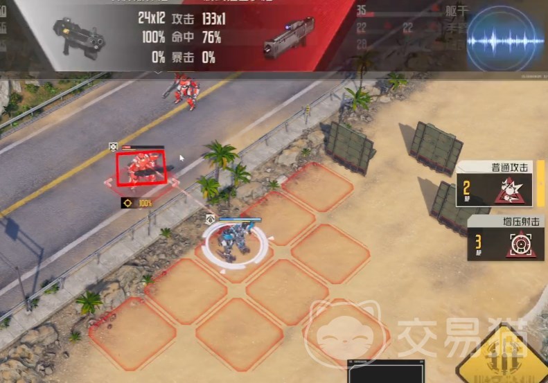 第三回合,用普攻收掉前面的残血敌人,这样只剩下最后一个满血敌人了,而己方的血线还算比较健康。此外这里的机甲也是有闪避概率的,只要能miss一枪就能轻松过关。
