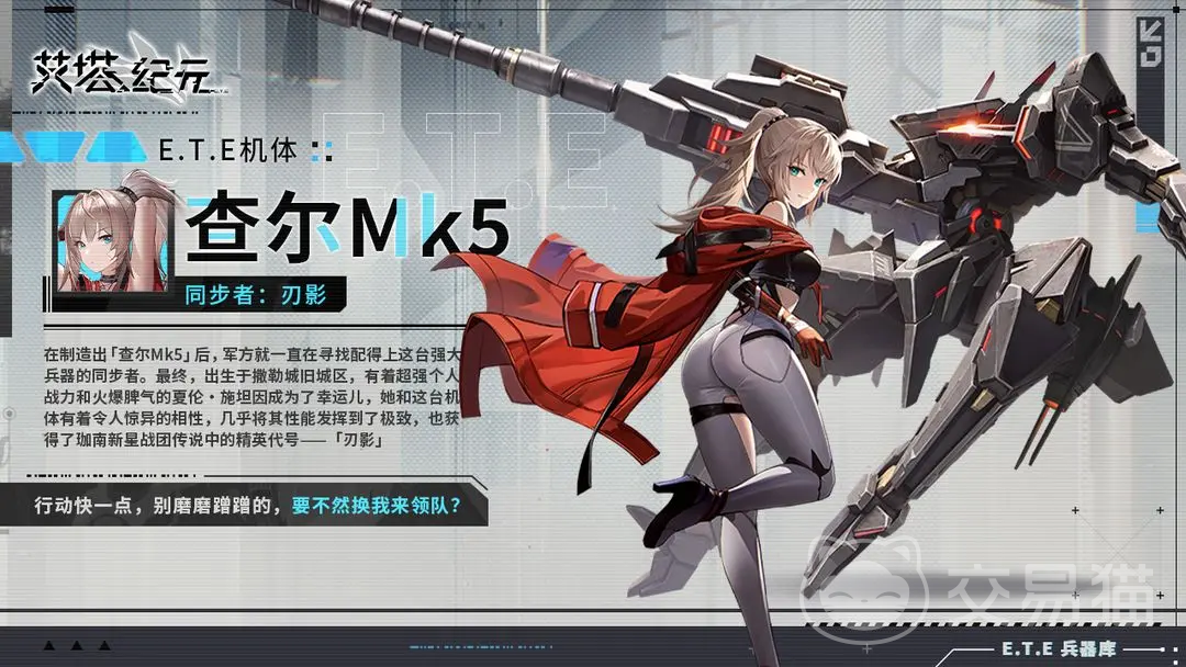 新手的话,比较推荐大家去选择的第一个角色是查尔MK5,这是一个物理输出类型的机甲,伤害非常的可观,在战斗的时候对敌方释放的火力很强,而且技能方面还能够对对手破盾,在作战的时候妥妥的大主C,前期使用她会比较舒服的。