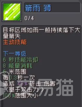 有这些单体伤害比较高的技能支撑,这个时候大家就需要考虑群攻了,小编这里也比较纠结,在实战中,小编推荐系带的是【箭雨】这个技能的话属于群体攻击伤害,在一个范围内召唤出一篇箭雨来机械能攻击,而且是持续性的伤害,推荐大家使用这个技能的时候,可以携带副系点数【专注本能】,这个技能可以让玩家们装备或者天赋所携带的智力效果,直接转换成敏捷,敏捷收益提高,可以增加攻击伤害,而且自身回复能量的效果也会增加!