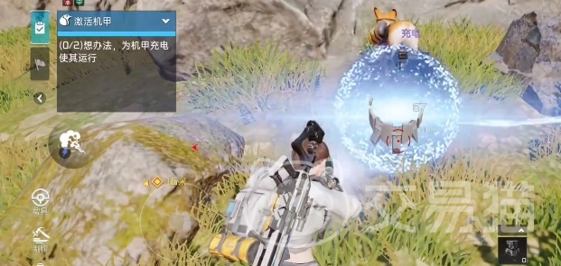 爆炸后里面就会出现一个“雷暴仪”装置,发现这个装置的时候你也会收到npc“星澜”的提示,按照它所说的为该装置进行充能,之后就可以利用它为机甲充电。