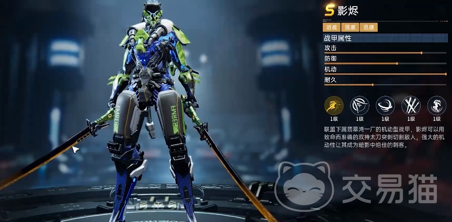 影烬这个机甲在游戏中其实是属于一个机动型的机甲了,在游戏中也是很多玩家都知道的,它的手上会有两个大刀,在攻击敌人的时候就可以利用这两个大刀来切割敌人,而且因为本身的移动速度就很快,所以在上面也可以充当刺客收割类型的机甲来使用,在动作上面有一个连续跳跃的效果,所以还可以用作近战来输出,新手时期用这个机甲的效果还是很不错的哦。