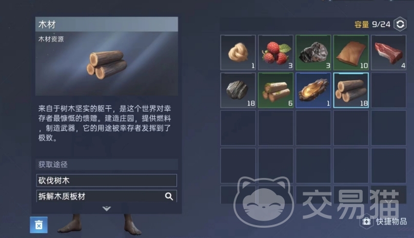 其实木头的种类有很多,包括杉木,木材等等,一般需求量最大的就是木材,不过它本身也属于比较廉价的一种材料,获取途径也是非常丰富,除了直接砍伐采集意外,通过拆解木质板材,或者直接去杂货商店买都是可以的。