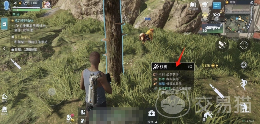 采集树木的方法还算简单,只需要走到一棵树的面前,等它弹出对应的信息介绍之后,直接点击这个树的名字,然后你的角色就会自动拿出工具开始进行木头的采集,其中木材实在采集过程中逐步获得的,其他高级木料则需要等到采集完毕爆出。