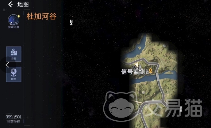 信号监测站的数目其实并不少,不过前期比较容易到达的一处是杜加河谷(999,1501)这里,首先打开地图,然后找到这个坐标之后,就能发现信号监测站的字样,之后选择那里的远程终端进行标记,然后往那里进军即可。