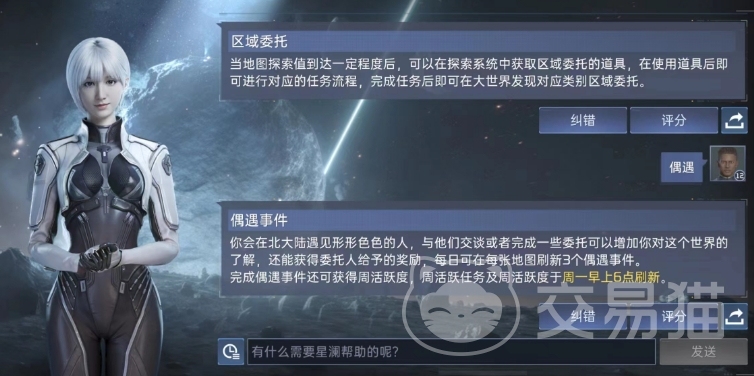 当然,无论哪种委托,它们的奖励都非常丰厚,其中包括平常那些任务会给的原晶,探索奖章和联盟点等等,同样的,里面有时也会给予无比珍贵的外观颗粒,但比起一般的任务,这类从偶遇事件中触发的委托还会给予一定的周活跃度奖励,这个活跃度达到一定数值你就能领取额外的资源了。