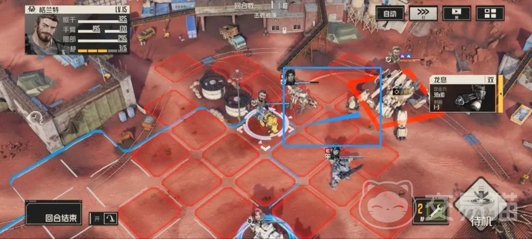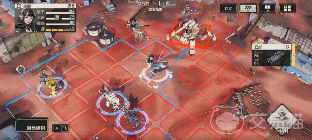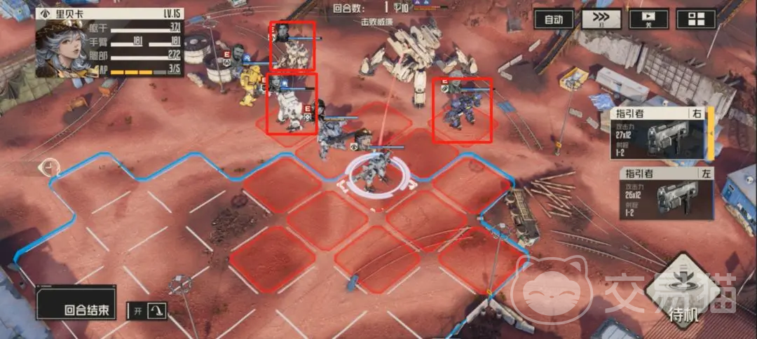 再到第四回合的时候,是对手攻击,这时候他的武装以及传动都会恢复了,核心部位的保护也会恢复,这一回合不处理小兵没关系,但是下一回合就需要了。第五回合的时候让凯登向后一格,这样可以协助里贝卡远离火箭突袭的范围,然后还可以来对小兵进行击杀,格兰特继续给马库斯来治疗,黛娜配合去协力攻击。
