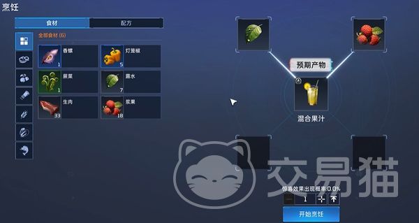 其实这道菜品在游戏中是非常常见的,而且制作方法也非常的简单,只需要大家在游戏中获得任意一种水果以及水资源就可以得到混合果汁了,就比如大家在游戏中如果获得露水以及浆果的话,将其放到烹饪台上进行烹饪,就可以得到一杯优质的混合果汁啦。