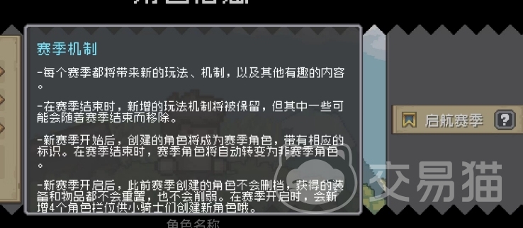 赛季机制的具体内容其实可以在创建角色的手进行查看,创角界面的右边会显示当前赛季,目前它刚公测不久那么就属于是启航赛季,点击其右边的问号图标,即可查看机制相关内容。