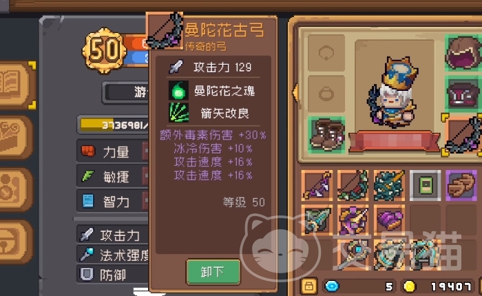 曼陀花古弓:它的属性仍然和前面两个一样,不过羁绊的“曼陀花之魂”可以提供额外的生命回复能力,并且“箭矢改良”还能增加投射物的飞行速度与穿透效果,这对于敌人众多情况下的持久作战是很有帮助的。