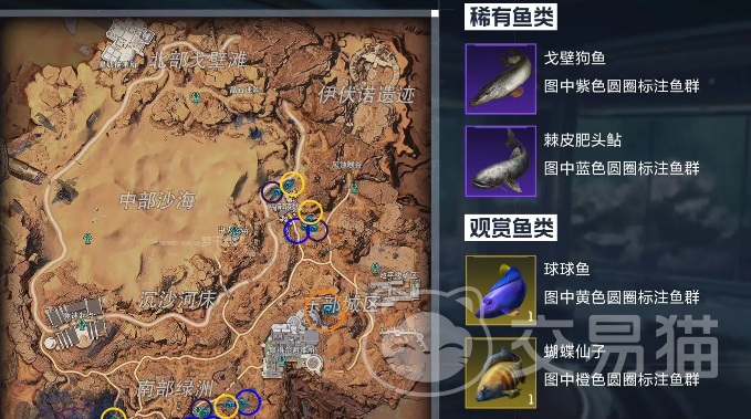 【戈壁拘鱼】【棘皮肥头贴】掉落地点:尖叫戈壁各海滩附近的稀有鱼群处,(968,191)、(1471.1062)/(981,110)、(1139,235)
