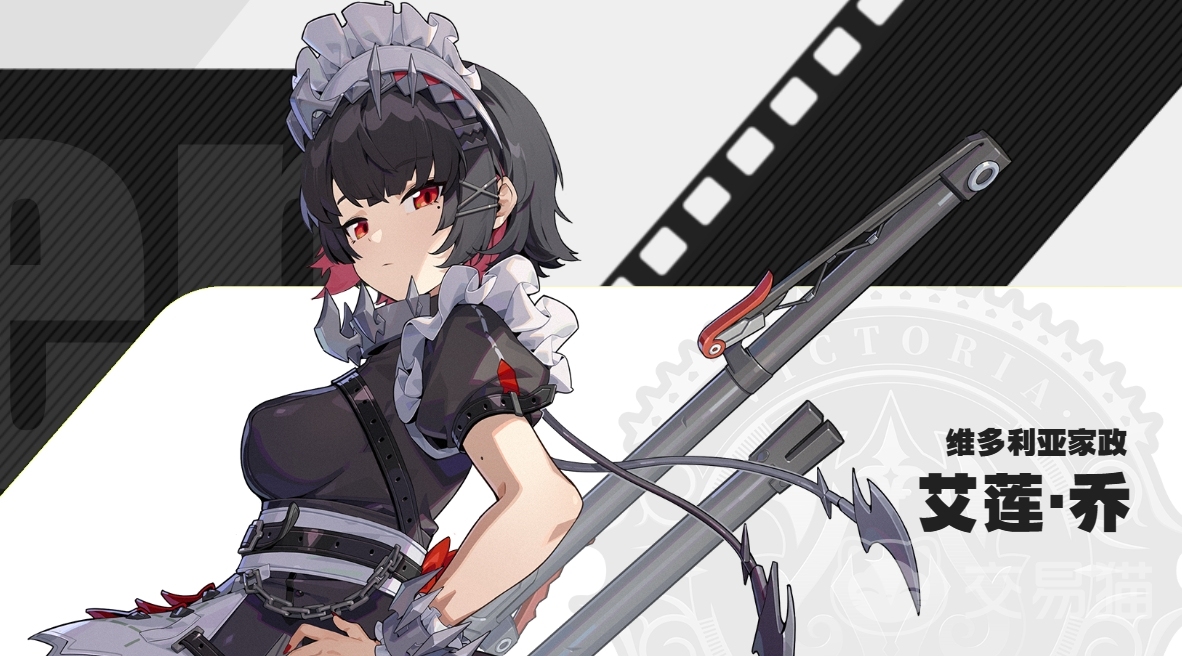 首先给大家带来的便是我们维多利亚家政里的角色,第一位便是本次测试当中作为up时出场的艾莲·乔,非常帅气潇洒的鲨鱼女仆,冰属性角色能打出非常不错的寒冰属性伤害。性格方面非常的专注认真一丝不苟,表面上一直说着麻烦的委托,想换个班表,但实际上只写任务起来一点都不含糊,属于口嫌体正直类型的角色。