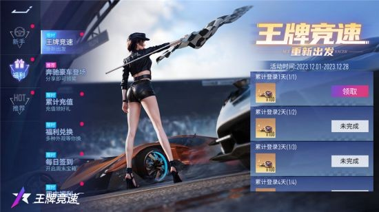 12月28日这天登录的话,那么还能够领到最多700的绑定纪念币,如果累积登录九天的话,还可以得到黑金车的一个自选大礼包,就能够在礼包当中任意挑选一个黑金的赛车了,15日更新之后,如果登录速度节的话,还能直接领到1000枚的绑定纪念币,而且还可以得到所有车都适用的10级的直升卡。