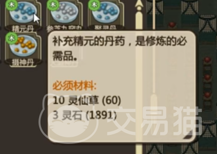 精元丹,这种丹药的能力是在七日间增加产生精元的能力,但是本人的消耗会增加。是前中期很多玩家转换精元所需要的丹药,这个丹药还是属于平普通类型的丹药,基本上可以从商店或者是各类宝箱之中进行获取到。