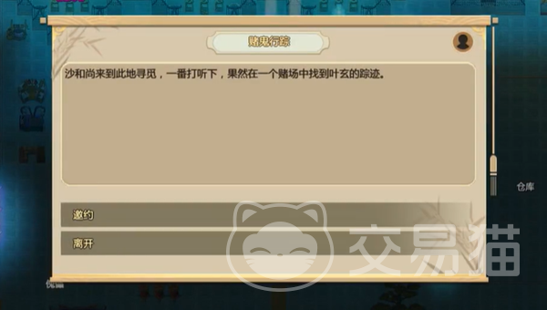 叶玄是游戏中的一个随机奇遇,在准备触发这个事件之前强烈推荐在派遣出去的角色身上携带骰子道具,我们可以直接在手工桌上进行制作,获取难度是0。之后我们可以前往各大城镇的酒馆、牌坊这里进行打听,有叶玄位置消息之后直接指派携带骰子的角色去找就可以了。