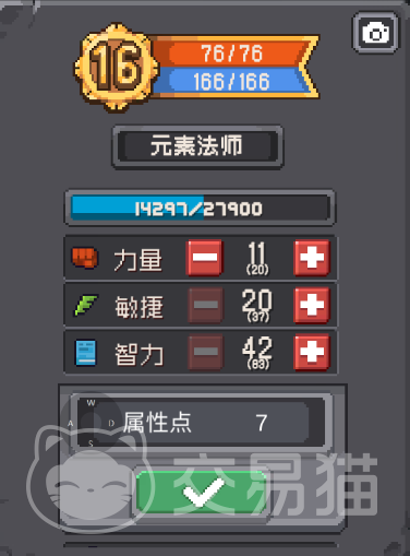 随着等级的上升,大家还可以获得一些基础的点数,这些点数在角色界面是可以进行加点的,大家一共是可以选择加在三个不同的位置上,首先就是力量加点了,这个加点主要是以生命值为主要,比较适合游戏中的守卫,战士等职业,防御系数高在搭配上力量点数就非常的不错了;同时还有敏捷和智力,敏捷则是以输出伤害为主要,属于比较通用的加点,所有职业都可以使用这个加点,而智力就比较适合法师类的,需要频繁的释放技能,主要是增加最大能量值;