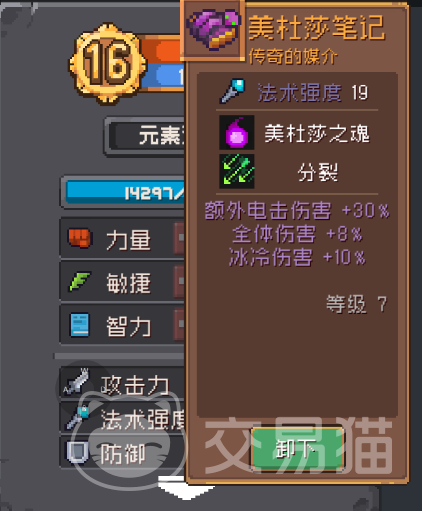 2,美杜莎法袍,美杜莎兜帽,美杜莎长靴,美杜莎短弓,美杜莎长枪:【电击核心】激活后,可以获得电击伤害的加成和电击抗性,同时还有概率触发电属性弹慕攻击效果;以及【分裂】效果这是装备的两个不同的羁绊效果!