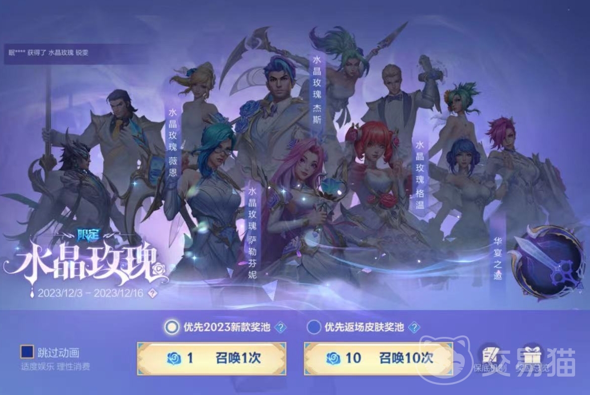 以上就是英雄联盟手游水晶玫瑰皮肤怎么得的所有内容,可以看到在有保底的情况下,玩家要想让自己喜欢的英雄获得水晶玫瑰皮肤还是挺简单的,至于要不要考虑全皮肤入手,就交由召唤师们自行去判断了。