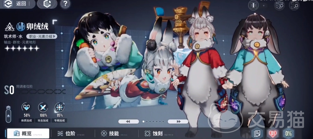 第四个就为大家推荐卯绒绒,这个角色是带有可爱外观超高输出的角色,在游戏中它造成的输出可以说是最高的,以为是带有元素输出效果的,所以在游戏中其实使用的时候是可以带一定控制效果来用的,大部分玩家也会叫这个角色为双兔,因为抽卡的时候大家抽到的是一张卡,但是上阵是会有两只兔子出现的,前期抽到的概率不大,因为这个角色的强度很高所以也被一部分玩家给奉为真神,前期要是大家运气好抽到的话基本过副本是没有什么难度的。
