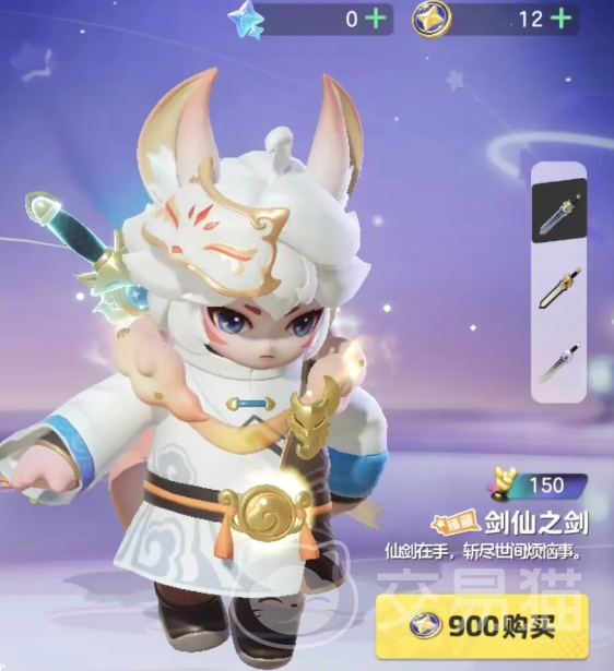 【剑仙之剑】这款皮肤就非常的特殊的,是有特效的一款皮肤,而且皮肤等级是臻藏,属于特效皮肤中,最推荐大家入手的一款了,这款皮肤的售价比较贵,需要使用900点星币购买,而且星币是需要大家充值获得的,整个皮肤采用的了异族风格,白色大面积的渲染也不会觉得单调,衣身有灰色的祥云图案进行点缀,而且在袖口两侧还有蓝色的祥云图,同时角色的面部也是进行了一个装饰,在游戏中是比较独特的,白色的头发搭配上两个非常灵动的狐狸耳朵,背后搭配一个水晶长剑和狐狸面罩,神秘十足!