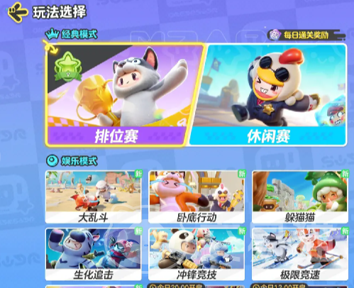游戏中包含了排位赛和休闲赛玩法,这两种属于经典玩法了,在游戏中可以选择单人参加,或者双人和四人组队参加,还是比较不错的,每个赛季都可以得到一份限定 的皮肤!