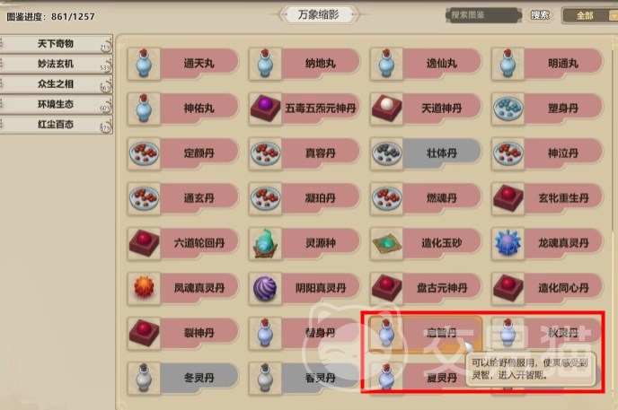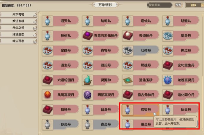 启智方法一般有两种,第一种是很常见的用启智丹,但这种丹药也不是一定能买到的,没买到的话就只能自己去炼制,那就比较费时又费力了。另一种方法就很简单粗暴了,直接去蜀山购买“万象通心决”或者百蛮山脉“万兽通心决”。