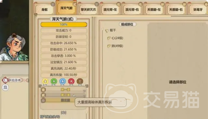 优先开启的是混元臂以及天盾腿,两个基础秘体,所以要先将秘体对应的肌肉进行淬炼,混元臂能淬炼四个前腿的肌肉,开始的时候可以用,生机精华,生命本源,或者造化命元的其中一个就可以,这些精华是可以通过吃药来获得的,需要是药台制作的弹药,内门的丹药不行。