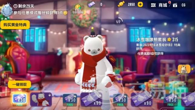 本次的活动叫【冰雪奇妙夜】,玩家们可以通过购买【黄金特典】来激活黄金季票,激活后,就可以获得【绅士墩墩熊】套装,通过后续的等级升级,可以解锁【星光绒绒鹿】套装,