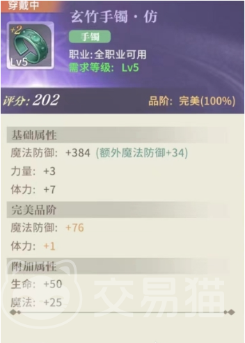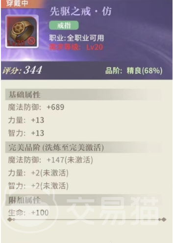 这是一个比较适合过渡的武器装备,虽然能力没有特别优越,但是基础属性也不错了,攻防两面的属性都不错,而且有689的魔法防御方面的提升效果,还有数值可观的力量和智力的加持,那么角色不论是物理还是魔法造成的损伤都能更上一层楼了,而且也有一点生命值方面的加成,这样角色的生存能力也增强了一点,容错理所当然也提升了。