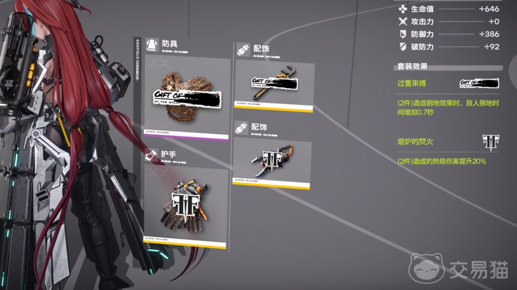 目前,游戏内的套装搭配大多以3件套(护甲、手、双配饰)和2+2(凑双套装效果)为主,例如玩家可给角色穿搭焚火2件套和铁卫2件套,让角色在输出和坦度方面都能有所提升。当然了,若是定位为主C的角色,最好还是带上能加对应元素伤害的3件套更好,毕竟游戏内的装备并不算特别难获取,还是挺容易让角色都实现装备毕业的。