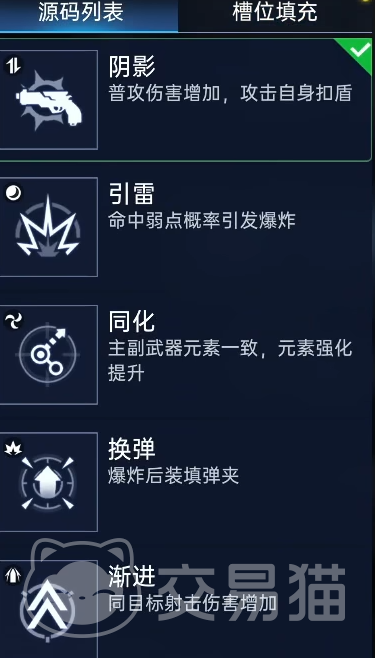 至于副源码,可以选择强攻,反击,渐进,星运。首先强攻可以提高命中弱点时候的伤害,反击则是增加被攻击时的射速。渐进则是向同一个目标攻击的时候伤害会叠加,星运则是攻击概率附带额外的效果。