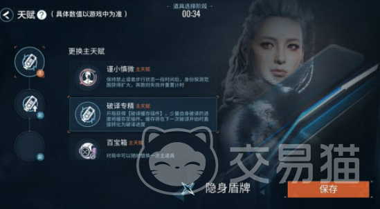 天狼星主团队的主天赋分为三种,第一谨慎这个可以在一定的范围内观察到莫比乌斯的存在。第二个天赋是解码专精,天狼星的特工可以将小部分的破译信息进行缓冲并将其转换成下一次破译的过程。第三个天赋是百宝箱,天狼星特工可以在游戏中,任意切换自己的物品中的主要道具,每局只有一次机会。
