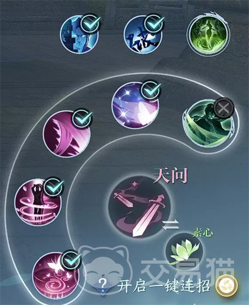 灵犀:天问的控制技能,可以在攻击时触发灵犀飞舞,对目标造成额外伤害,并使目标眩晕。灵犀的触发几率会随着花瓣的数量增加而提高,所以可以与花间配合,增加输出和控制效果。