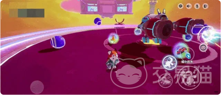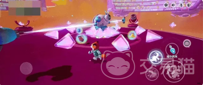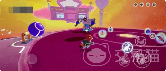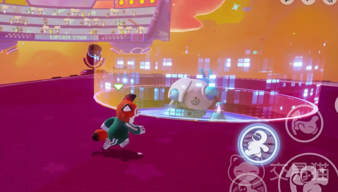 简单理解一下这个玩法就是,如果能够在这张地图当中坚持到最后,那么肯定是身法傲然群雄的星宝了,和之前更新的地图不一样,该地图当中充满着科技感,犹如一个赛博朋克风格的竞技场,地图的主色调是深紫色的,在平台的周围有四个粉色的炮台,远处也就是天空出设置了非常豪华的观众席,这里有很多星宝在助威呐喊,突然之间彩色光芒大盛,出现了一个蓝白相间的强大机器人,在此刻开始,就会展开激烈的竞逐,至此星宝就展开了和它的角逐。