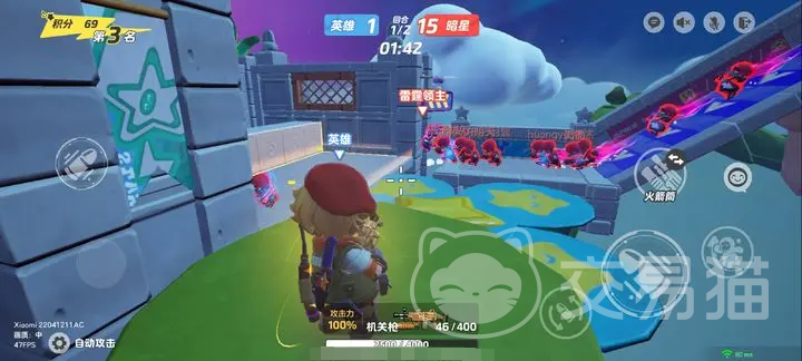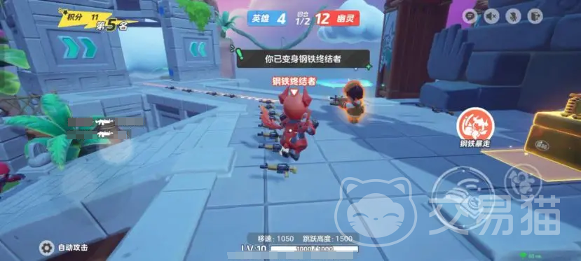 幽灵这一方的阵营,有一个英雄为小红,这个星宝的技能是暴走,还有一个灵魂忍者,击退手雷是它的技能,还拥有一个终结者英雄,每个角色都有属于自己的技能,而且其中还有个特殊的钢铁终结者,吃宝箱就可以变身。
