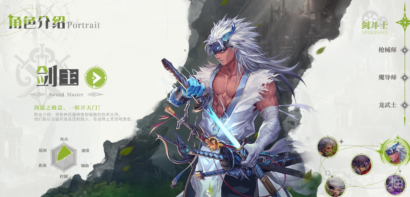 剑主:从名字就可以看出这是一个以剑为武器的职业,通常用剑的角色输出都不低。剑主职业不仅输出能力强而且灵活性非常高,这就代表他的攻击速度和移动速度快,另外攻击距离远输出范围也较广,这些优点可以让玩家在各种战斗中发挥不错的作用。说完优点,这个职业的缺点也是非常明显的,他没有控制型技能,血量不算高,这就代表玩家在操作时候必须先手,而且操作要灵活,能够有效的躲避对手攻击。这对玩家的操作要求较高,所以目前选择剑主转职的基本都是对自己很自信的高手。普通玩家慎选。