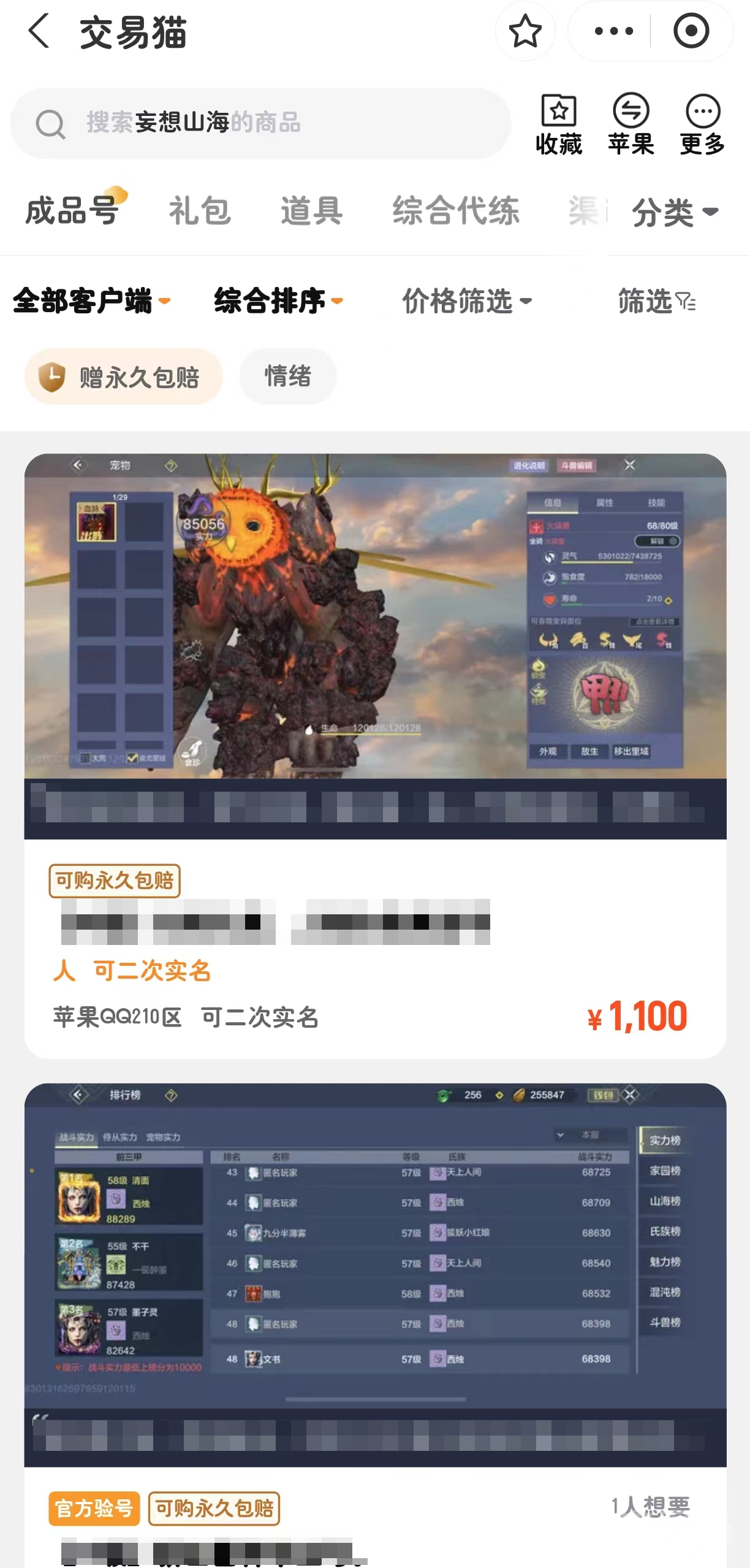 妄想山海这款游戏虽然足够好玩,但是一些玩家可能因为时间、精力等原因无法继续玩下去,但又不想浪费自己的账号和装备,因此会有部分人会选择将游戏账号出售。在这个时候,像交易猫这样的靠谱平台就显得十分重要了。