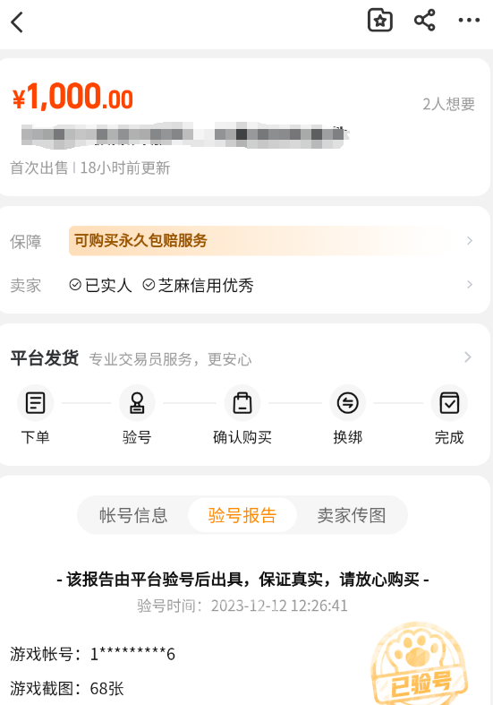 1、平台验号,账号真实。很多人买号时都担心买到的账号与实际不符,而交易猫的平台验货服务就能帮你打消这个顾虑。因为卖家发布账号商品的时候,可以委托平台进行账号的验货,确定与实际信息与描述截图一致后,商品详情页会生成验号的报告,玩家可放心购买。而且在下单完成后,可要求客服进行人工的二次验号,提供实时验号截图。