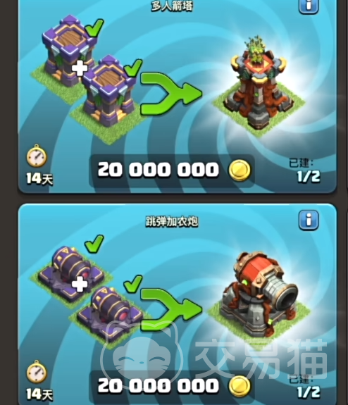 玩家们有一点需要注意,在合并之后的建筑是属于永久建筑,是不可以被拆开的。并且合并的建筑必须是最高等级建筑,目前在游戏官方所放出的资料来看,最高等级建筑一个是弓箭手塔,另一个则是弹跳加农炮。
